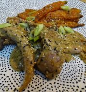 - 500 g d' aiguillettes de canard - 3 oignons - 2 tranches de pain d'épices - 1 cuillère à café d'épices à pain d'épices - 4 cuillères à soupe de vinaigre balsamique - 2 cuillères à soupe de miel de tournesol - 30 g de beurre - 1 belle pincée de bouillon de légumes en poudre - Sel [...]