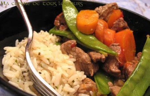 - 1 cuillère à table (15 ml) d'huile végétale - 1 1/2 lb (750 g) de bifteck de ronde désossé,coupé en cubes - 2 gousses d' ail hachées finement - 4 carottes coupées en tranches - 1/2 tasse (125 ml) oignon verts coupés en tranches - 1 1/2 tasse (375 ml) de bouillon de boeuf - 2 cuillè [...]