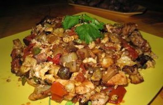 - 1/2 aubergine - 1 petite courgette - quelques pommes de terre s (3 ou 4 petites) - 1 tomate et demi - du poivron - 3 oeufs - de la viande coupée en dés - sel et poivre , - tabel karwiya - de l'huile Préparation Etape 1 Le principe est de faire frire les légumes coupés en pe [...]