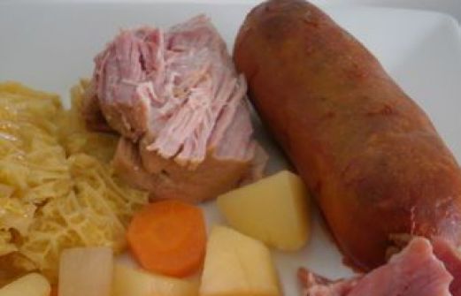 - 1 petit jarret de porc - 1 petite palette de porc - 6 saucisses fumées - 1 bouquet garni - 1/4 de chou vert pommé - 1 navet - 5 pommes de terre - 7 carottes - 1 branche de céleri Préparation Etape 1 Dans une cocotte,placer la viande avec le bouquet-garni et la branche de cél [...]