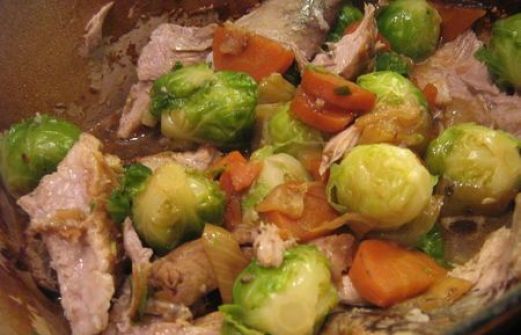 - 1/2 palette fraîche avec os - 2 oignons - 2 carottes - 1 feuille de laurier - 2 clous de girofle - 25 cL de bière blonde - choux de Bruxelles - 5 cL de genièvre de Loos - huile Préparation Etape 1 Dans une cocotte en fonte, faire dorer la palette de tous côtés avec un peu d'h [...]
