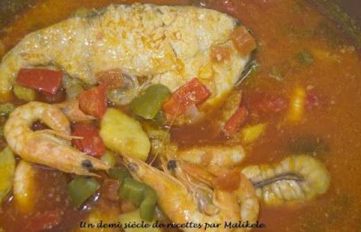 - 2 tranches de poisson blanc - 20 crevettes - ½ poivron vert coupé en cubes - ½ poivron rouge coupé en cubes - 1 patate douce pelée et coupée en gros dés - 1 oignon émincé - 1 tomate détaillée en cubes - 2 gousses d'ail écrasées - 2 dl de lait de coco - 3 cuillères à soupe d?hui [...]