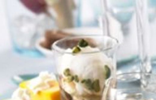 1 litre de sorbet mangue 1 litre de sorbet citron 1 litre de glace chocolat 1 litre de praliné 1 litre de glace café 2 bananes 1 pâte sablée 12 mini florentines ou mini fonds de tartelettes pistaches concassées chantilly (1 bombe ou préparée maison) caramel au l [...]