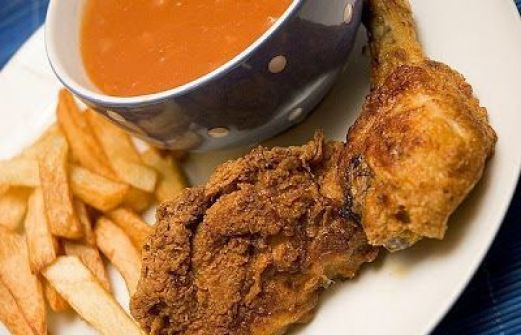 - 1 petit poulet découpé en morceaux, avec peau - 2 tasses (500 ml) farine - 2 cuillères à soupe de sel - 1 cuillère à soupe de sel de céleri - 1 cuillère à soupe de poivre - 2 cuillères à soupe de moutarde sèche - 4 cuillères à soupe de paprika - 2 cuillères à soupe de poudre d'ail [...]