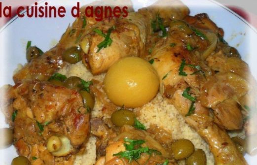 4 cuisses de poulet (coupées en 2) 1 oignon 100 g d’ olives vertes 1 citron confit (vendu en bocal) 15 cl de bouillon de volaille 2 cuil d’épices pour tajine (il existe tout prêt …sinon mélange de gingembre, safran, poivre, cumin, cannelle, curcuma et paprika) 1 dosette de safra [...]