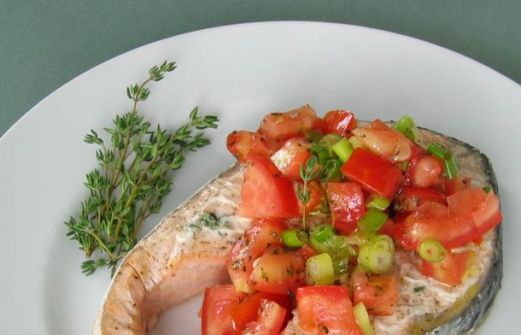 papier d'aluminium 10 g de beurre non salé 340 g de darnes de saumon 30 ml de vin blanc 1 g de origan séché poivre 240 g de tomates 15 g de oignons verts/échalotes 15 ml de huile d'olive extra vierge sel Préparation ÉTAPE 1 Cuire séparément chaque darne [...]