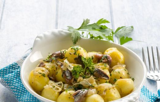 24 filets d'anchois marinés à l'huile 3 oeufs 6 belles pommes de terre à chair jaune 80 g d'olives noires 2 échalotes 2 gousses d'ail 2 c. à café de persil ½ verre de vin blanc sec 1 c. à soupe de vinaigre 4 c. à soupe d'huile sel, poivre Préparation [...]
