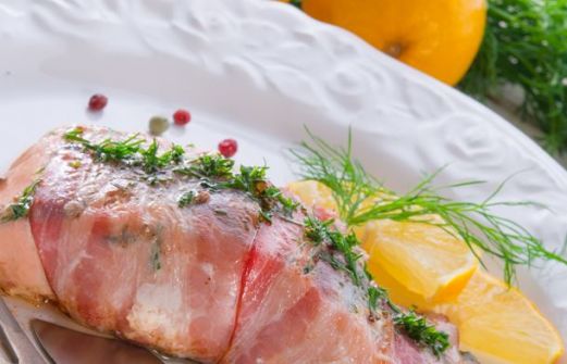 4 pavés de saumon 4 tranches de jambon fumé aneth ciselé huile d'olive baies roses Préparation ÉTAPE 1 Préchauffez le four th.8 (240°C). ÉTAPE 2 Enroulez chaque pavé de saumon d'une tranche de jambon fumé. ÉTAPE 3 Disposez-les dans un plat à four avec un filet d h [...]