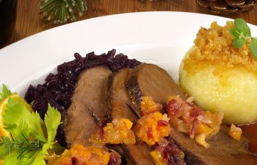 Pour la viande : 1.5 kg de carré de marcassin margarine sel, poivre Pour la marinade : 3/4 l de vin rouge 6 c. à soupe de vieux vinaigre de vin 2 carottes coupées en rondelles 2 oignons coupés en rondelles 1 branche de céléri 1 gousse d'ail coupée en 4 1 bouq [...]