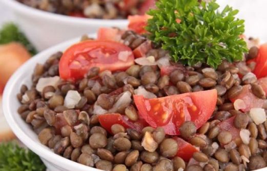 250 g de lentilles bouillon de poulet (ou bien une eau salée et épicée) 2 tomates coupées en petits dès 1 oignon vert coupé en fines lamelles 2 c. à soupe d'huile d'olive 2 c. à café de vinaigre 1 c. à soupe de menthe hachée 1/2 c. à café de cumin moulu 1/2 c. [...]