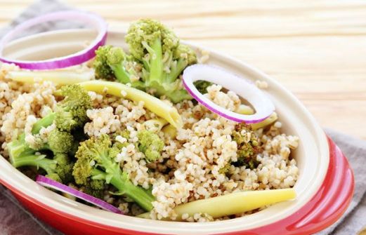 200 g de boulgour 125 g de féta en cube 100 g de brocoli 1 concombre 1 poivron rouge 50 g d’olives noires dénoyautées 2 oignons violets ½ citron 5 c. à soupe huile d’olive Feuilles de menthe Sel, poivre Préparation ÉTAPE 1 Versez le boulgour dans un [...]