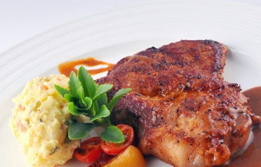 2 côtes de porc petits cornichons au vinaigre (quantité selon votre goût) 1 petite boîte de concentré de tomates beurre ou margarine 1 verre de vin blanc sec sel, poivre eau Pour la purée : pommes de terre 1 verre de lait beurre ou margarine selon le goût sel [...]