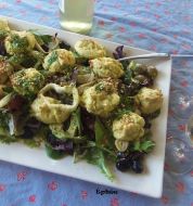 8 petits palets de chévre frais 1 poivron rouge 200 g de salade de mâche 1/2 coeur de frisée 75 g de cerneaux de noix 75 ml de vinaigre de vin blanc 50 ml de vin blanc sec 1 c. à café de moutarde sucre 3 c. à soupe d’huile de noix sel, poivre Préparatio [...]