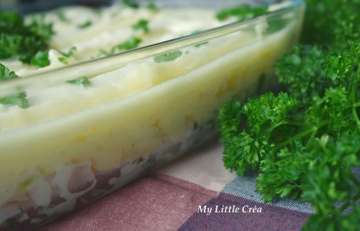Je vous partage aujourd'hui la recette d'un plat unique, un parmentier de poisson. J'ai fait le choix de mélanger de la morue à dessalage rapide et du cabillaud. Je pense refaire ce parmentier avec un duo de saumon et saumon fumé. V ous pouvez y mettre le poisson que vous voulez. [...]
