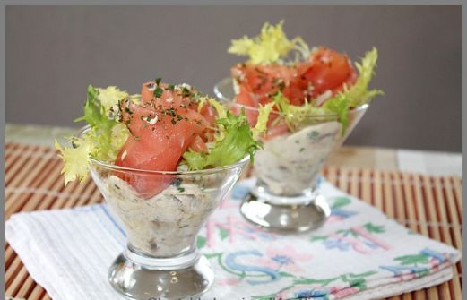 Verrine de champignons à la crème et truite fumée Une entrée légère qui met en appétit les plus difficiles ! Une salade de champignons de Paris crus à la crème, et fines herbes. (Pour cela, il faut des champigons très frais, petits et très fermes) Accompagnée d'une fleur de truite fum [...]