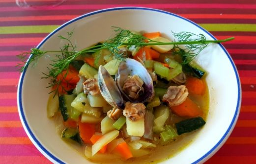 Ce bouillon constitue, en fait, un plat principal, et non pas, une soupe comme on pourrait le penser. Il se prépare avec des palourdes ou des coques, en fonction de la saison, mais aussi du coût, les premières étant toujours plus onéreuses que les secondes. Des belles palourdes, pêchées dan [...]