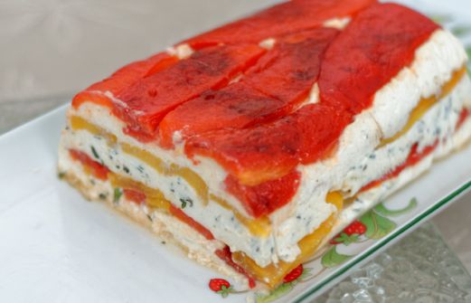 Préparation : 30 minutes Cuisson : 20 minutes Ingrédients (pour 6 personnes) : 600 gr de ricotta 2 poivrons rouges 2 poivrons jaunes 2 cs de miel de thym 1 bouquet de basilic 2 gousses d'ail 8 feuilles de gélatine fleur [...]