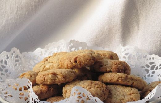 Pour les fruits secs, j'ai effectué un mélange à parts égales d'amandes concassées, noisettes, noix et pignons. Un petit accompagnement agréable pour escorter une salade d'orange , une compote , des poires rôties ou pochées ...