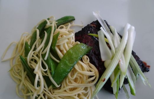 Ingrédients : 60 ml de mirin (vin de riz sucré japonais) 50 gr de sucre vergeoise blonde 60 ml de sauce soja 500 gr de saumon (4 x 125g coupé dans la partie épaisse du poisson) 2 càs de vinaigre de riz 1 à 2 oignons de printemps coupés en deux puis en julienne Préparation : [...]
