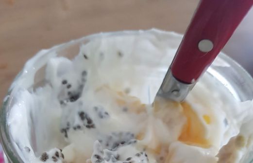 40 g de flocons d'avoine 80 ml de lait écrémé 1 nectarine ( ou autre fruit suivant la saison) 100 g de fromage blanc 0% 1/2 CC de graines de Chia Vous pouvez si vous le souhaitez ajouter 1 ou 2 gouttes d’édulcorant liquide dans le fromage blanc Dans un pot à confiture , verser les flocons [...]
