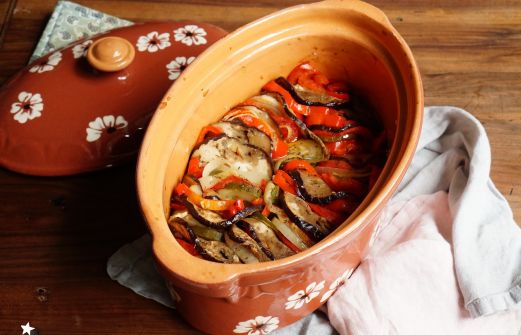 Cette jolie terrine trône sur notre buffet, c'est un bel objet de déco, certes, mais j'aime bien l'idée de la garnir aussi de bonnes choses, lui faisant ainsi retrouver sa fonction première : cuire les aliments !