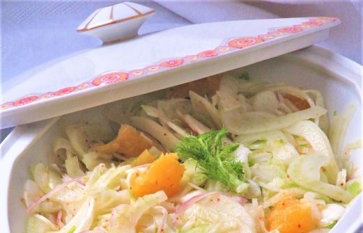 Une petite salade de saison, nous sommes en plein dans celle du fenouil. On gagne à la préparer à l'avance, les saveurs ont le temps de se développer.