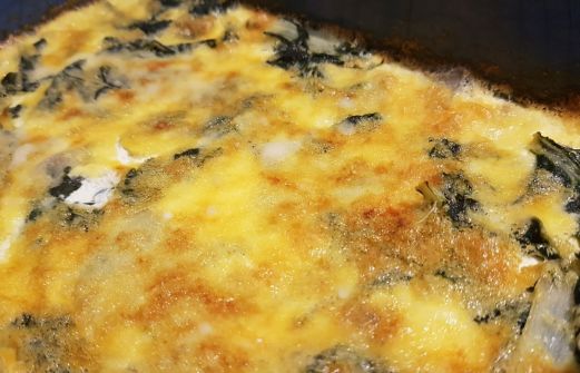 5 feuilles et branches de blettes 150g de fromage frais (carré frais ou autre) 3 œufs 15cl de lait 2 CS de maïzena 2 tranches de jambon 30g de parmesan sel, poivre