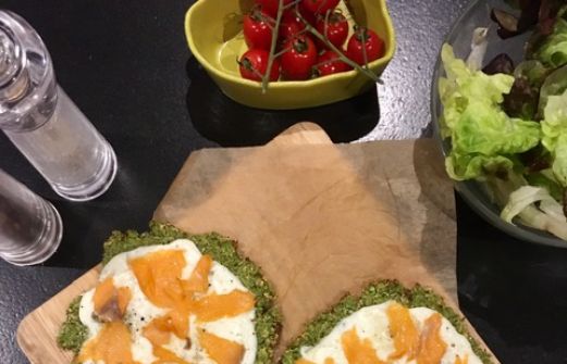 En fait cela consiste à utiliser du brocolis ou chou-fleur râpé pour réaliser une pâte, puis de la garnir comme une pizza.