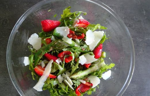 C'est la saison des asperges alors profitons-en en variant les recettes. J'avais gardé quelques asperges que j'avais achetées pour une recette de pâtes en vue de cette belle salade de printemps. Ingrédients pour 6 personnes : 250 g de fraises gariguettes 1 botte d'asperges v [...]