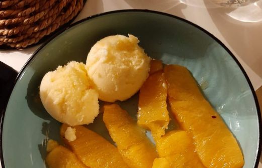 Voilà un dessert léger mais très gourmand, pour terminer un repas un peu copieux ! Ingrédients pour 4 personnes : 1 ananas frais 500 ml d'eau 150 g de sucre 1 zeste de citron jaune 1 gousse de vanille 50 g de beurre 40 g de sucre Mettre dans une casserole, l'eau, 1es 150 g de sucre, la ville fe [...]