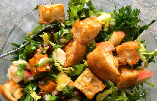 Je me suis inspirée d' une recette de Goodfood en l'adaptant à ce que j'avais sous la main. C'est un peu long à préparer car il y a plusieurs étapes, mais c'est décidément très bon ! 4 portions 225g de choux de Bruxelles 450g de courge butternut 2 pommes en dés 1/2 paquet de kale 100g de farro [...]