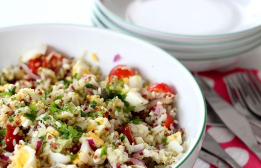 La dernière en date à la maison se compose de quinoa , de riz , de fêta , d' avocat et de plein d'autres bons ingrédient [...]