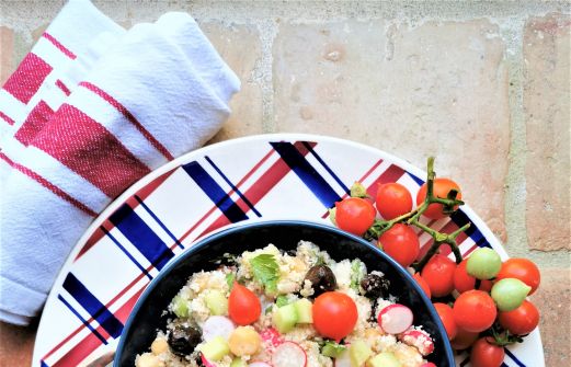 J'ai ajouté d'autres légumes ainsi que des pois chiches à mon taboulé habituel , des fines herbes, des olives pour une entrée fraîche, pleine de saveurs. Ingrédients 1/2 chou-fleur 1/2 botte de radis roses 1 belle poignée de pois chiches cuits 10 cm de concombre Tomates cerises Olives noires 1 [...]