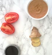 Une recette toute simple et très parfumée, fraîche et très réussie avec la note de sarrasin des nouilles Soba, pour un déjeuner léger et végétarien. Pour 2 personnes 200g de nouilles Soba 4 tomates rustiques 2 cuillères à soupe d'huile de sésame 1 gousse d'ail 3 cuillères à soupe de sauce soja [...]