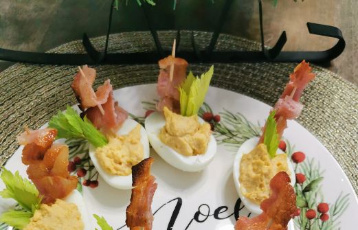 Préparation : 20 minutes Cuisson ; 25 minutes Portion : 12 Ingrédients 6 oeufs ¼ de tasse de mayonnaise 1 c. thé de moutarde en poudre ½ c. thé de paprika 2 c. thé de sauce Worcestershire 3 gouttes de sauce piquante aux piments rouges (de type Tabasco) 6 tranches de bacon coupées en d [...]