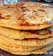 Ingrédients : 2 t. de farine 2 c.s de sucre 1 c.s de poudre à pâte 1 pincée de sel 2 oeufs 1,5 t. de lait chaud 6 c.s de beurre fondu Vanille