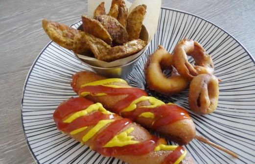 Voici une recette coréenne, en version US, les corn-dogs de knakies Tout aussi bon, certes, caloriques, mais allez, on n'en fera qu'une fois par an, promis - juré ! En tous les cas, je me suis amusée à les faire et la famille a adoré Tout le secret réside dans la pâte à corn-dog, c'est une pâte [...]