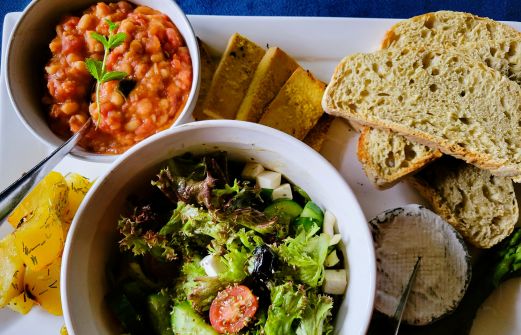 Un repas comme je les aime, avec tout plein d'éléments, et des restes pour les jours d'après. Des haricots blancs, tremps, cuits à l'eau, puis mijotés LONGUEMENT dans des tomates, avec ail, romarin, sel, oignon vert... Des pommes de terre cuites à l'eau en quartiers, puis rôties au four avec un [...]