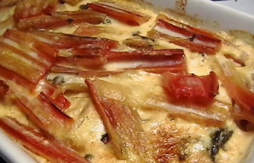 Non ! ce n'est pas de la rhubarbe, ce sont des bettes à cardes rouges... jusqu'à présent, je n'en avais mangées que des blanches, et c'est une première, car je n'en avais jamais cuisinées et cette recette est pas mal bonne ! 700 g de bettes à cardes (cotes et feuilles) 1 tasse 1/2 (375 ml ) [...]