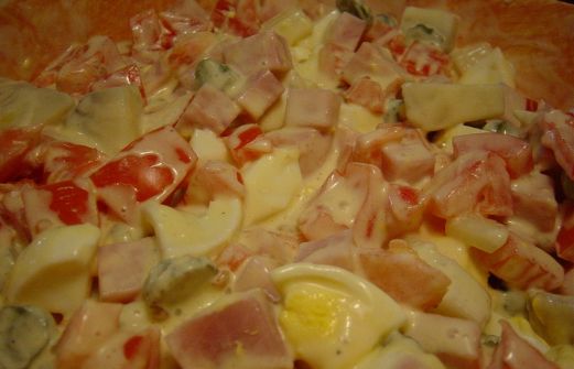 Habituellement, c est une recette "au pif" INGRÉDIENTS dans un saladier mélanger ensemble : 3 grosses pommes de terre cuites avec la peau, à l'eau salée (épluchées et coupées en dés ) 3 tomates italiennes coupées en dés 3 oeufs durs, coupés en dés 2 tranches de jambon épaisses, coupées en [...]