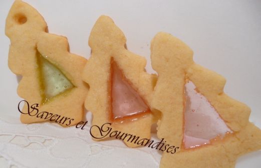 De jolis sapins  vitrés qu'on peut déguster tels quels ou accrocher sur le sapin  à l’aide de jolis rubans. Les vitres de ces biscuits sont confectionnées avec des morceaux de bonbons durs et translucides. J'ai déjà publié une recette de biscuits vitrés . Cette fois-ci, j’ai [...]