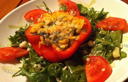 Coup de coeur pour ces beaux poivrons farcis!  Ça change agréablement des traditionnels poivrons farcis à la viande et ça peut se manger chaud, tiède, ou froid. On pourrait bien entendu y apporter des modifications selon ce que l'on a sous la main, mais je vous présente la façon que je les ai p [...]