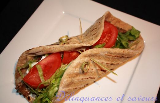 En fait, ça tient du gyros seulement pour l'allure;) MAIS nous nous sommes pratiquement roulés par terre tellement nous avons aimé! Je m'amuse à utiliser toujours la même recette de pain mais en modifiant le type de cuisson. Cette fois, une seule levée, on abaisse et on cuit dans une poêle tr [...]