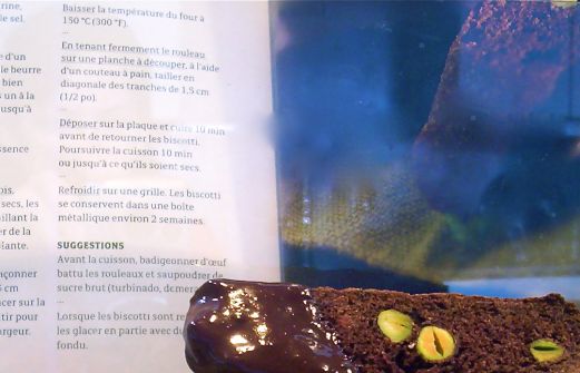 Pistaches et chocolat..... un mariage parfait à tremper dans un bon café au lait tout chaud... Biscotti double chocolat ( Josée DiStasio) 2 tasses de farine 1/2 tasse de cacao 1 c. à thé de soda à pâte 1/2 c. à thé de sel 1/4 tasse de beurre à la température a [...]