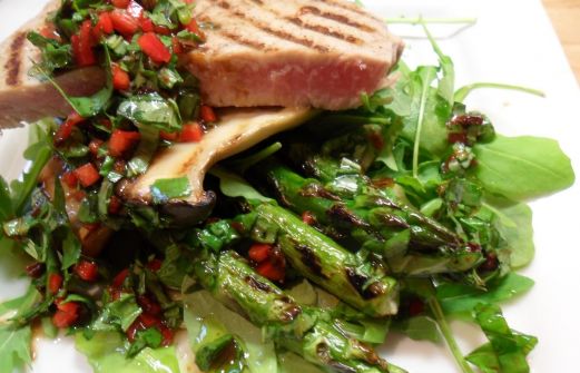 Voici donc la troisième recette que j'ai fait de mon livre Jamie's Food Revolution de Jamie Oliver . C'est une recette toute estivale qui se fait aussi bien au BBQ qu'à la poêle striée. C'est ultra-rapide et surtout extrêmement goûteux. N'hésitez pas à utiliser les herbes que vous désirez [...]