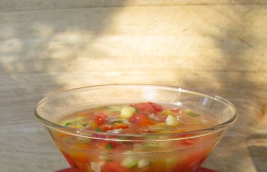 Voilà une version slow food du gaspacho qu’on connaît. Habituellement tous les légumes sont mixés, auxquels on ajoute, souvent en décoration, une petite quantité de brunoise crue de légumes. Le gaspacho que je vous propose aujourd’hui n’offre qu’un ingrédient mixé, le melon jaune, auq [...]