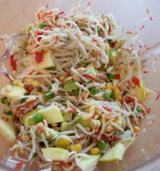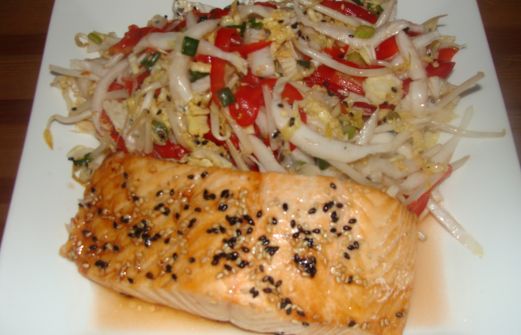 J'ai inventé cette salade alors que je voulais épuiser ma ''batch'' de sauce à rouleaux impériaux . C'est maintenant un classique que je refais sans me tanner! accompagné d''un bon morceau de saumon c'est encore meilleur! salade 1/2 chou nappa 1 poivron rouge 1 tasse fèves germées 4 [...]