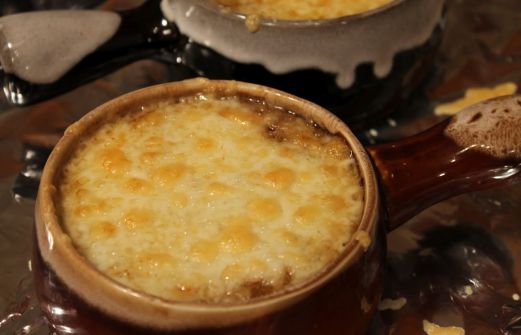 Une recette facile et savoureuse! MA SOUPE À L'OIGNON FACILE -huile -4-5 gros oignons tranchés mince -2 bte (10 on) de consommé de boeuf -5 bte (10 on) d'eau -1 sachet de soupe à l'oignon -1 feuille de laurier -1-2 gousses d'ail hachées -poivre -fromage (moi suisse ou emmenthal) -cro [...]