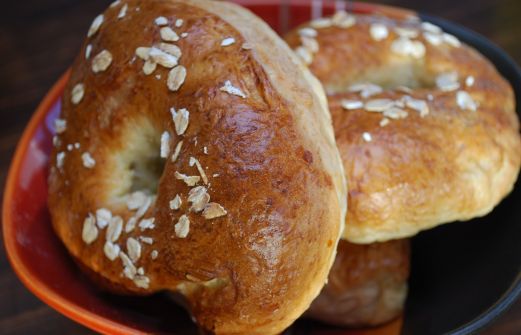 Lorsque j'ai vu ces bagels chez Nathalie , je me suis dit que c'était trop facile, mais comme je fais toujours confiance à Nathalie en ce qui concerne la boulange, je me suis lancée. En fait, j'ai tenté ceux avoine et miel en premier, puis j'ai fait les style New York, pas une fois, pas deux fo [...]