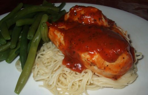 Rapide et pas compliquer ! 3 poitrine de poulet,coupées en deux 1 boîte de soupe tomate 10 oz 1 c. à thé de basilic 1/2 c. à thé d`origan 1 c. à soupe de cassonade 1 c. à soupe d`eau 1 c. à soupe de vinaigre 1 c. à thé de moutarde sèche Sel et poivre Préchauffer le four à 350 F. Dépose [...]